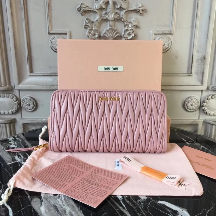 미우미우 마테라쎄 지퍼 장지갑 핑크