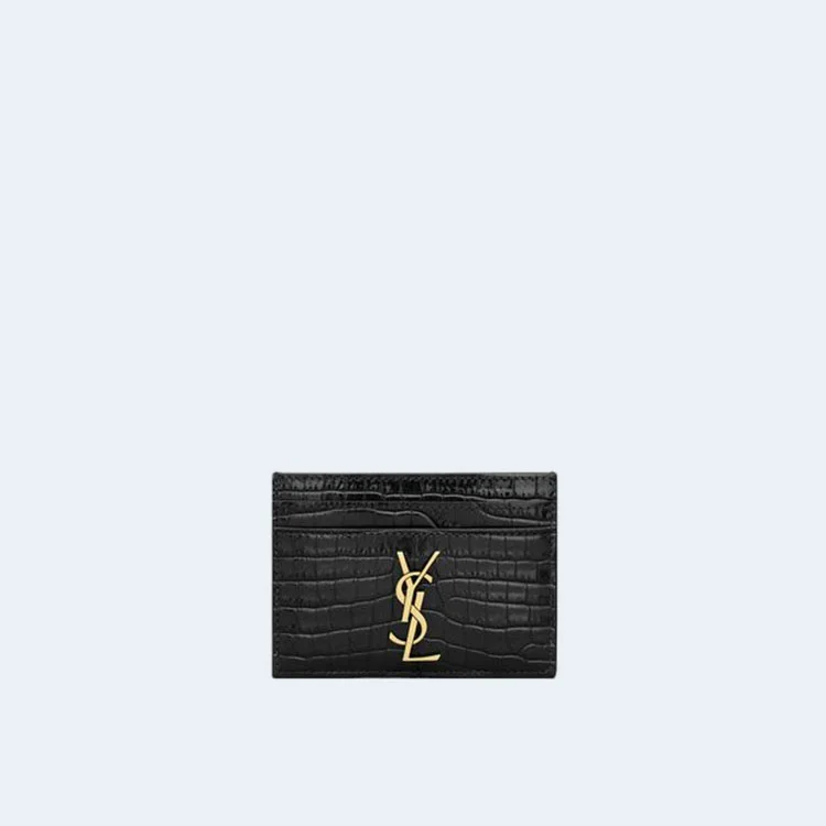 생로랑 크로커다일 카산드라 카드 케이스 블랙