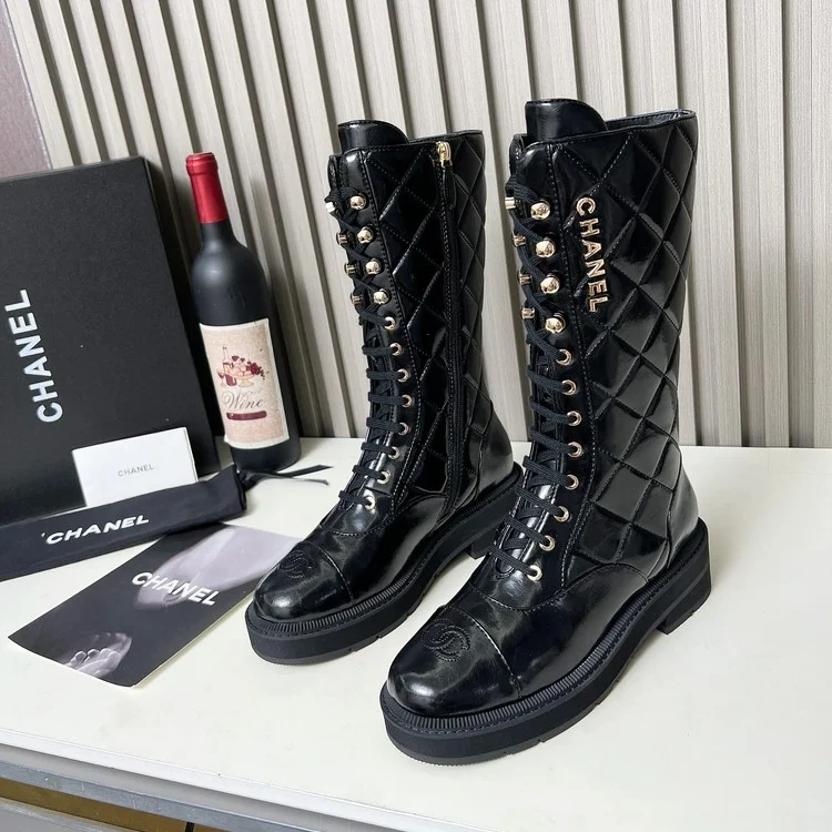 샤넬 25SS 컴뱃 퀄팅 롱부츠 블랙