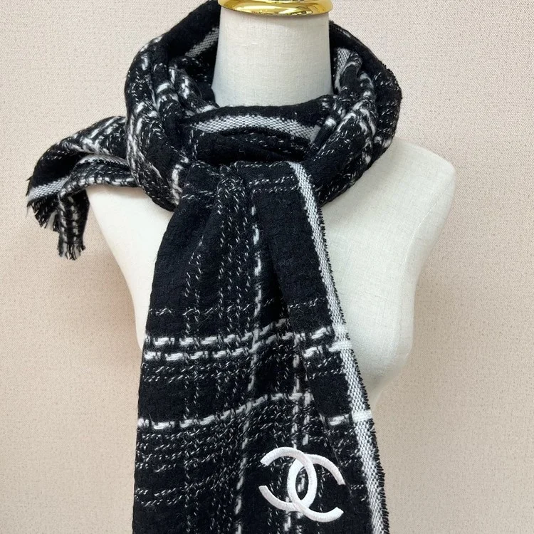 샤넬 cc 로고 머플러 울 100%