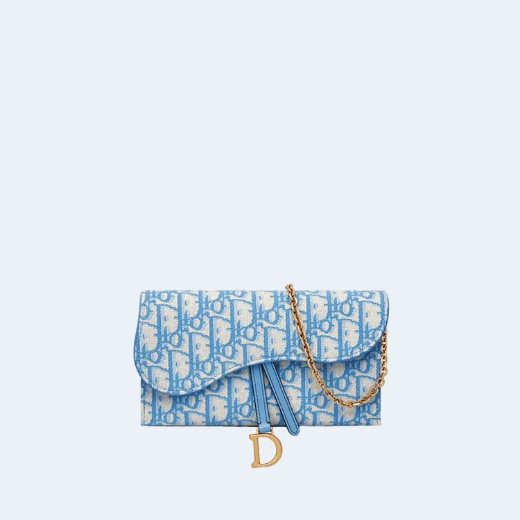 디올 오블리크 새들 장지갑 블루