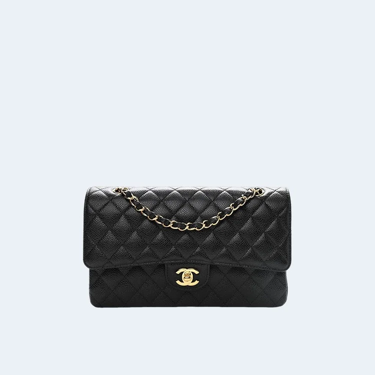 샤넬 클래식 미디움 캐비어 블랙 골드BEST