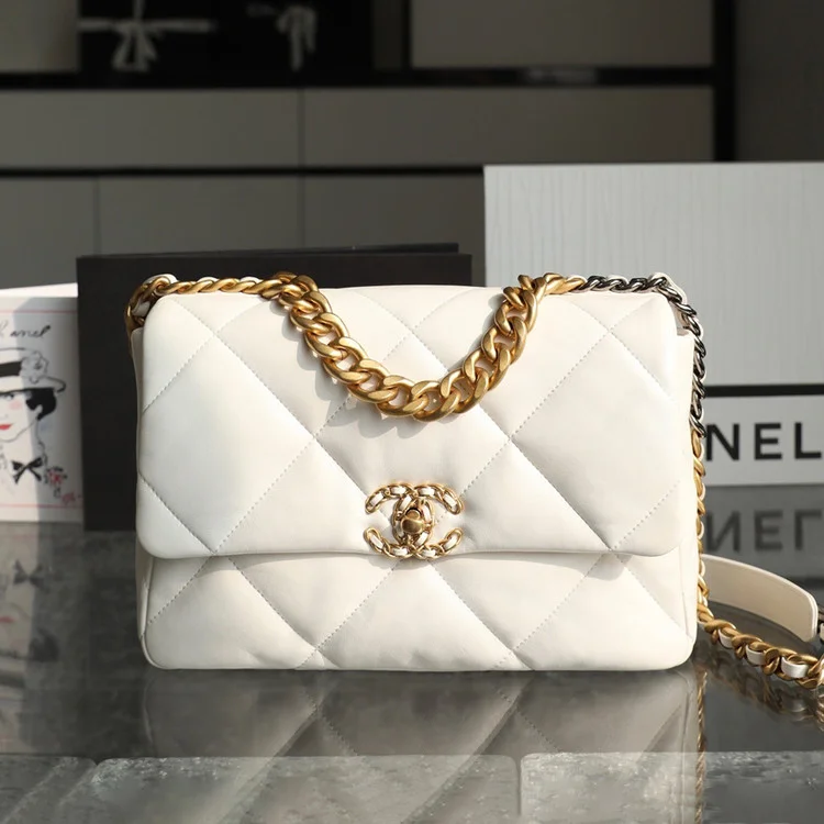 샤넬 19백 라지 램스킨 화이트 골드BEST