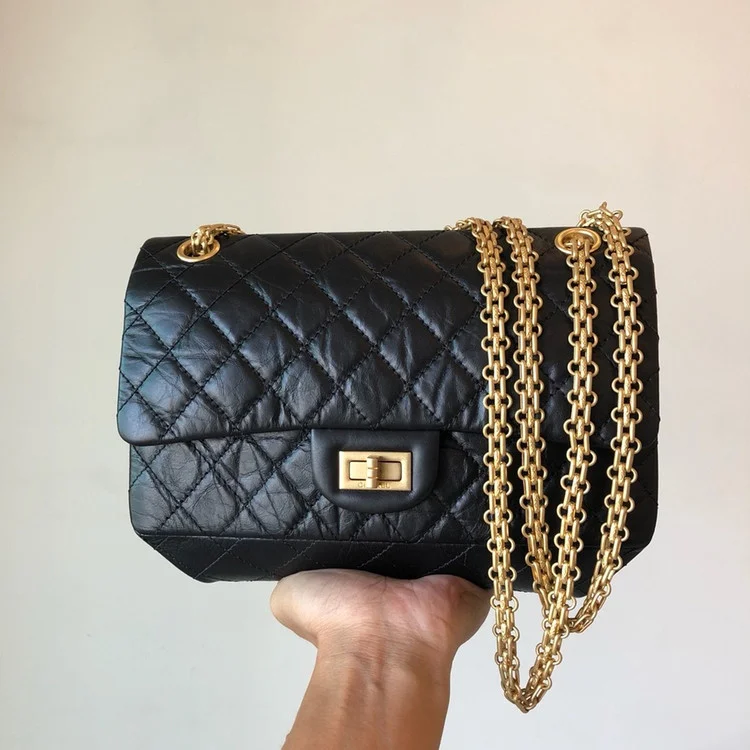 샤넬 2.55 빈티지 미디움 플랩백 블랙 빈티지 골드