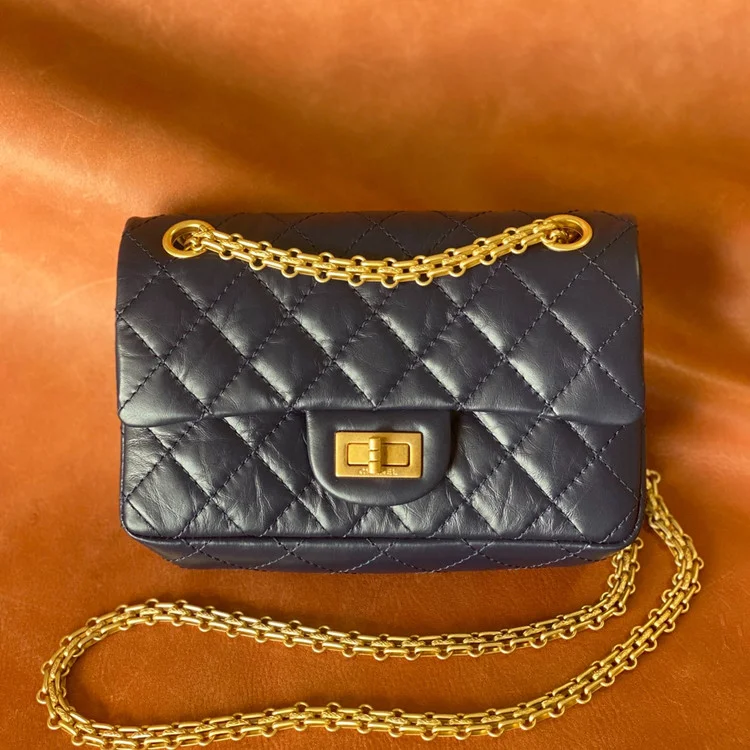 샤넬 2.55 빈티지 미니 플랩백 딥블루 골드