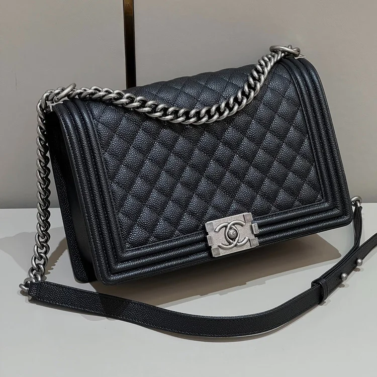 샤넬 보이백 라지 캐비어 블랙 빈티지 실버