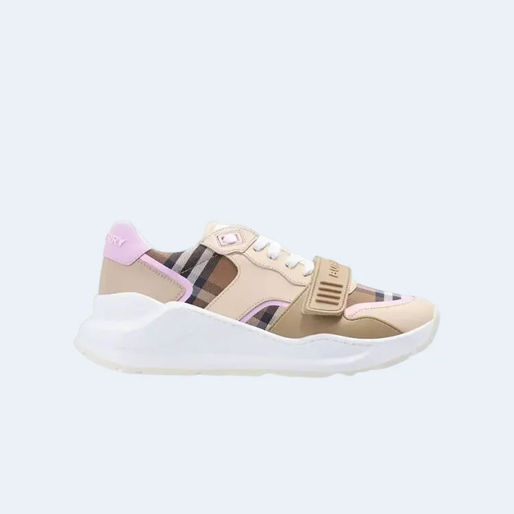 버버리 체크 코튼 레더 스니커즈
