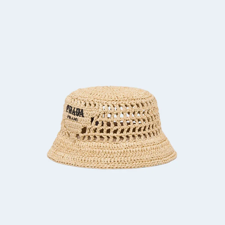 프라다 우븐 패브릭 내추럴 버킷 햇