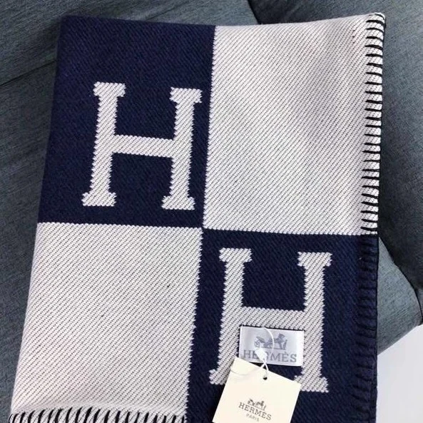 에르메스 아발론 H로고 블랭킷 담요 네이비