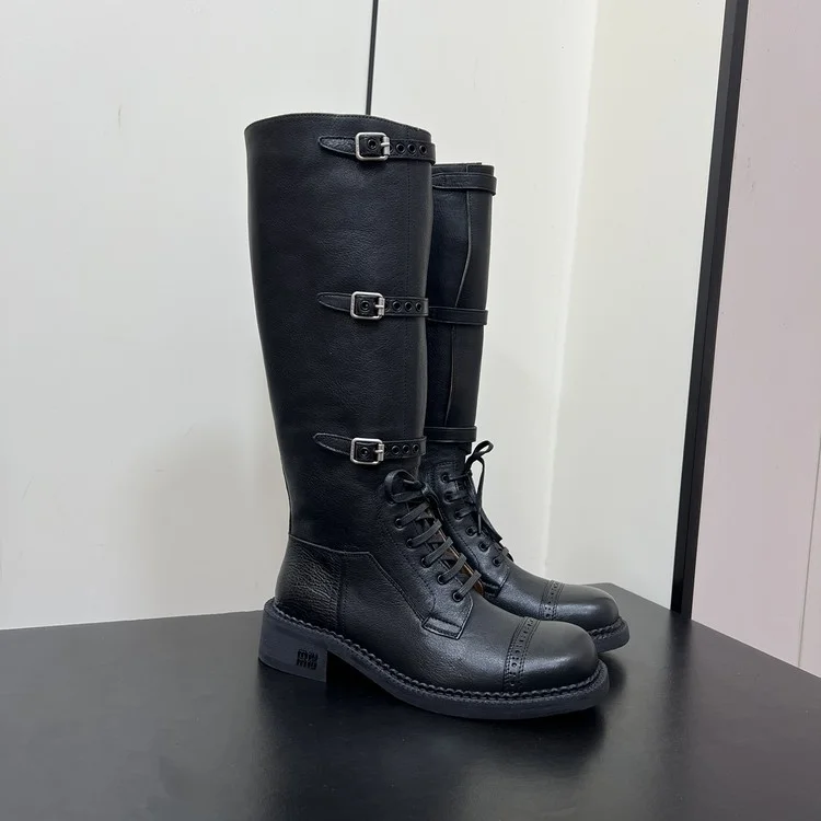 미우미우 룩 가죽 롱부츠 블랙