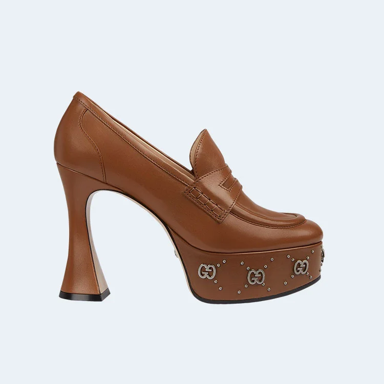 구찌 GG 스터드 플랫폼 로퍼 브라운