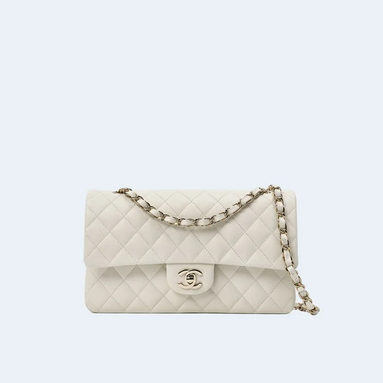 샤넬 클래식 미디움 캐비어 화이트 골드BEST