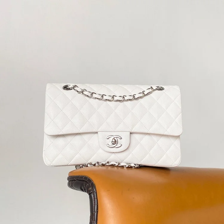 샤넬 클래식 미디움 캐비어 화이트 실버BEST