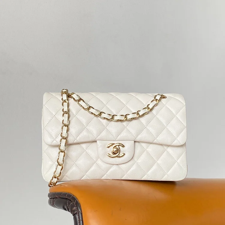 샤넬 클래식 스몰 캐비어 화이트 골드BEST
