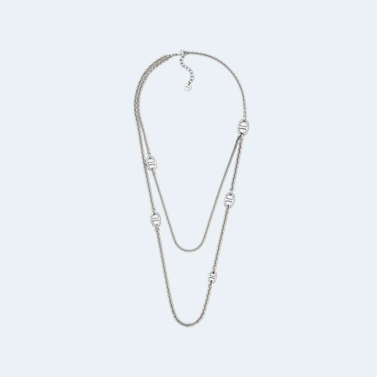 디올 네이비 실버 피니쉬 메탈 목걸이