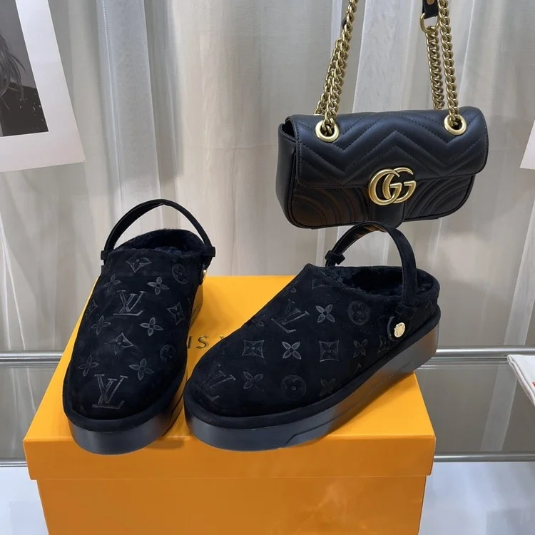 루이비통 아스펜 시어링 퍼 플랫폼 클로그 뮬