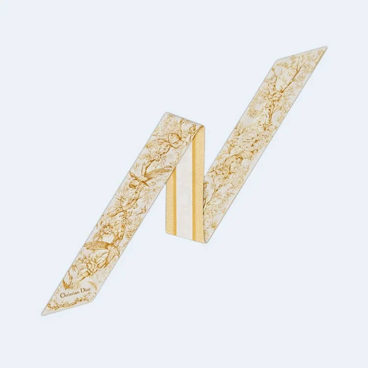 디올 화이트 앤 골드 톤 실크 트윌 미차 스카프