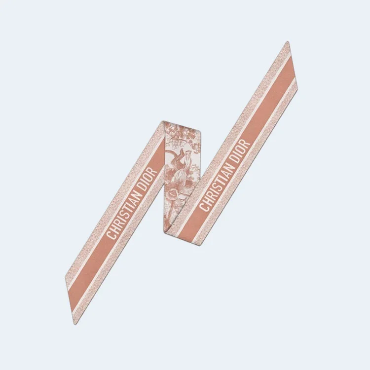 디올 아이보리 앤 핑크 실크 트윌 미차 스카프
