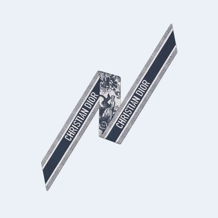 디올 아이보리 앤 네이비 블루 실크 트윌 미차 스카프
