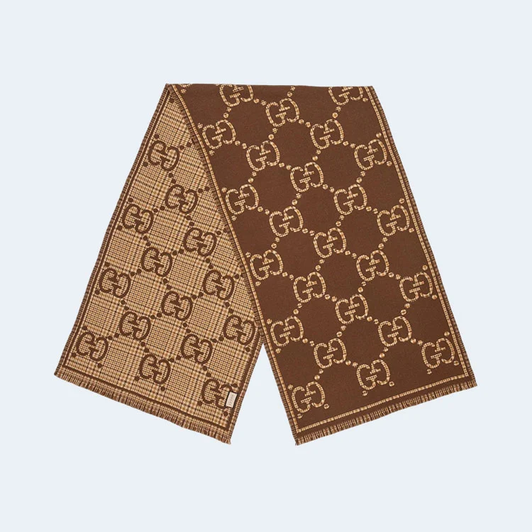 구찌 GG 체크 울 브라운 베이지 스카프
