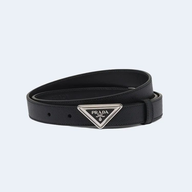 프라다 로고 버클 사피아노 가죽 벨트 실버