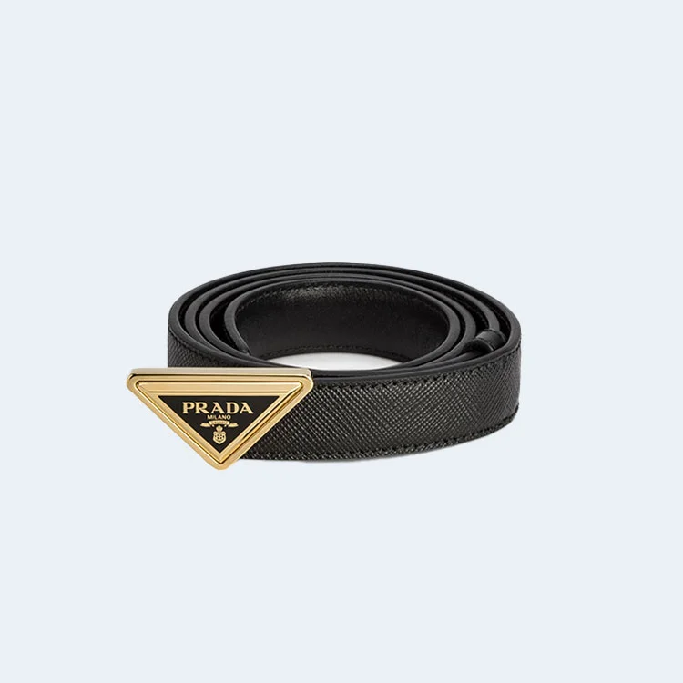 프라다 로고 버클 사피아노 가죽 벨트 골드