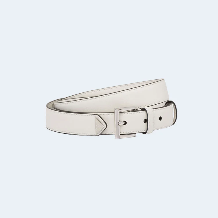 프라다 트라이앵글 로고 가죽 벨트 화이트 25mm