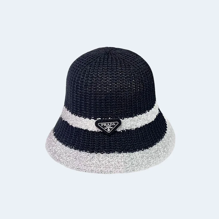 프라다 배색 블랙 니트 버킷 햇