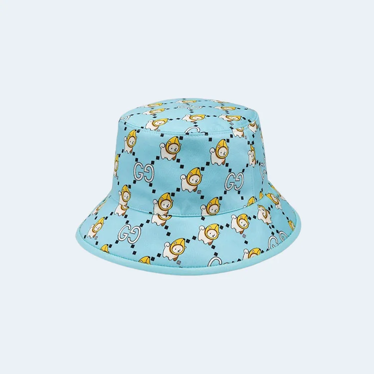 구찌 카와이 애니멀 프린트 블루 코튼 버킷 햇