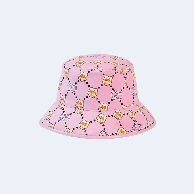 구찌 카와이 애니멀 프린트 핑크 코튼 버킷 햇