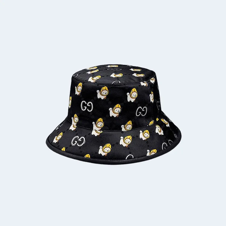 구찌 카와이 애니멀 프린트 블랙 코튼 버킷 햇