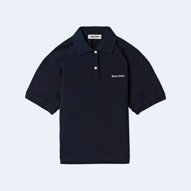 미우미우 코튼 피케 폴로 셔츠 네이비