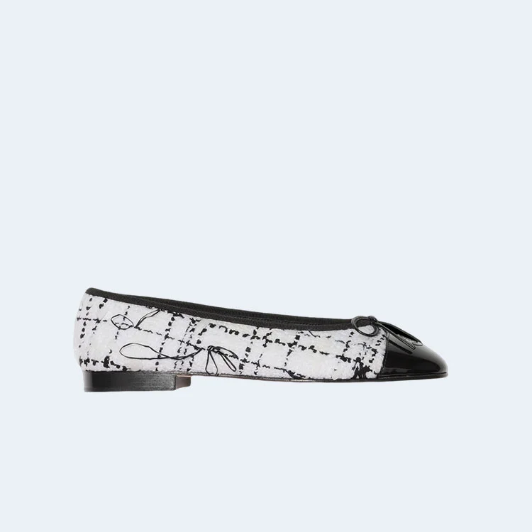 샤넬 발레리나 플랫 트위드 페이턴트 카프스킨 샌들