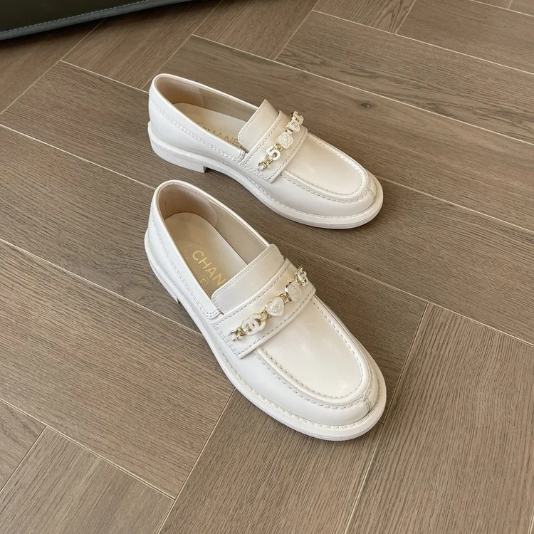 샤넬 24SS 카프스킨 메탈 로퍼 화이트