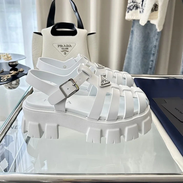 프라다 러버 모노리스 샌들 화이트
