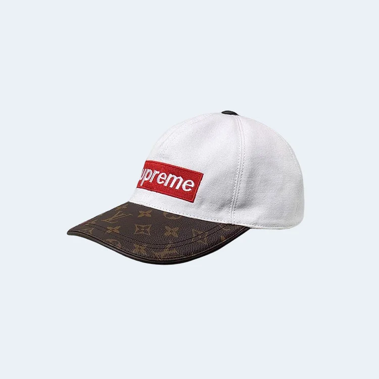 루이비통 x 슈프림 화이트 로고 베이스볼 캡