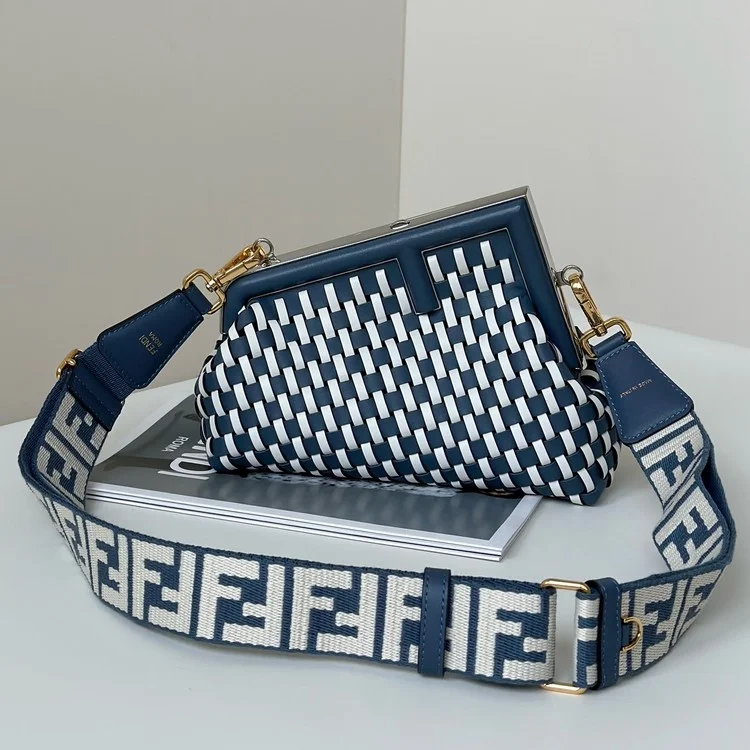 펜디 퍼스트 스몰 화이트 앤 블루 우븐 레더백