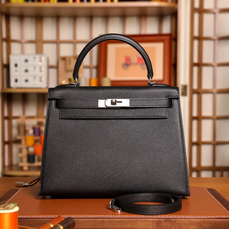 에르메스 켈리 28 셀리에 블랙 실버 하드웨어 (100% HAND MADE)