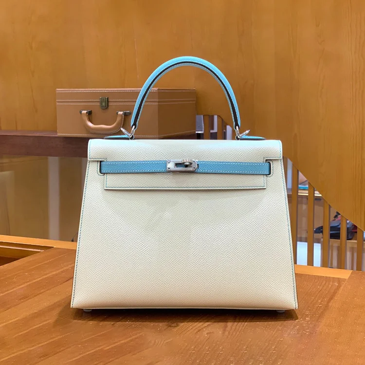 에르메스 켈리 25 셀리에 화이트 마카롱 실버 하드웨어 (100% HAND MADE)