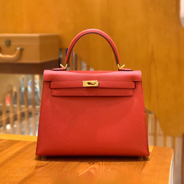 에르메스 켈리 25 셀리에 플래그 레드 골드 하드웨어 (100% HAND MADE)